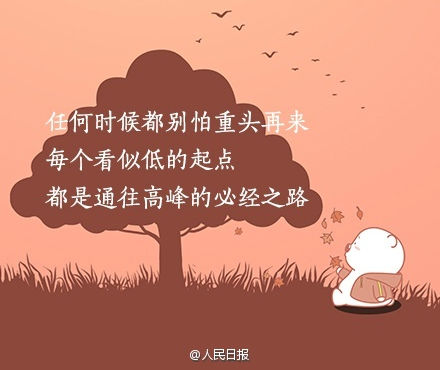 任何時候都別怕重來,每個看似低的起點,都是通往高峰的必經之路。你不努力,誰又能替你成長?來源:新浪微博@人民日報