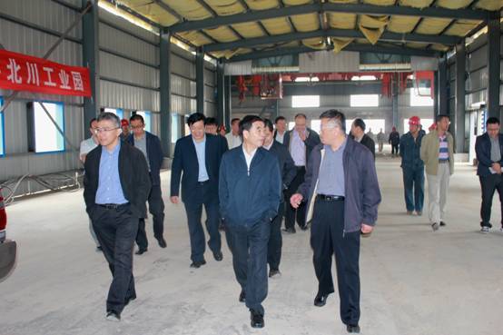 圖一:駱副省長(中)一行在集團王總(右一)等領導的陪同下實地來到生產車間視察